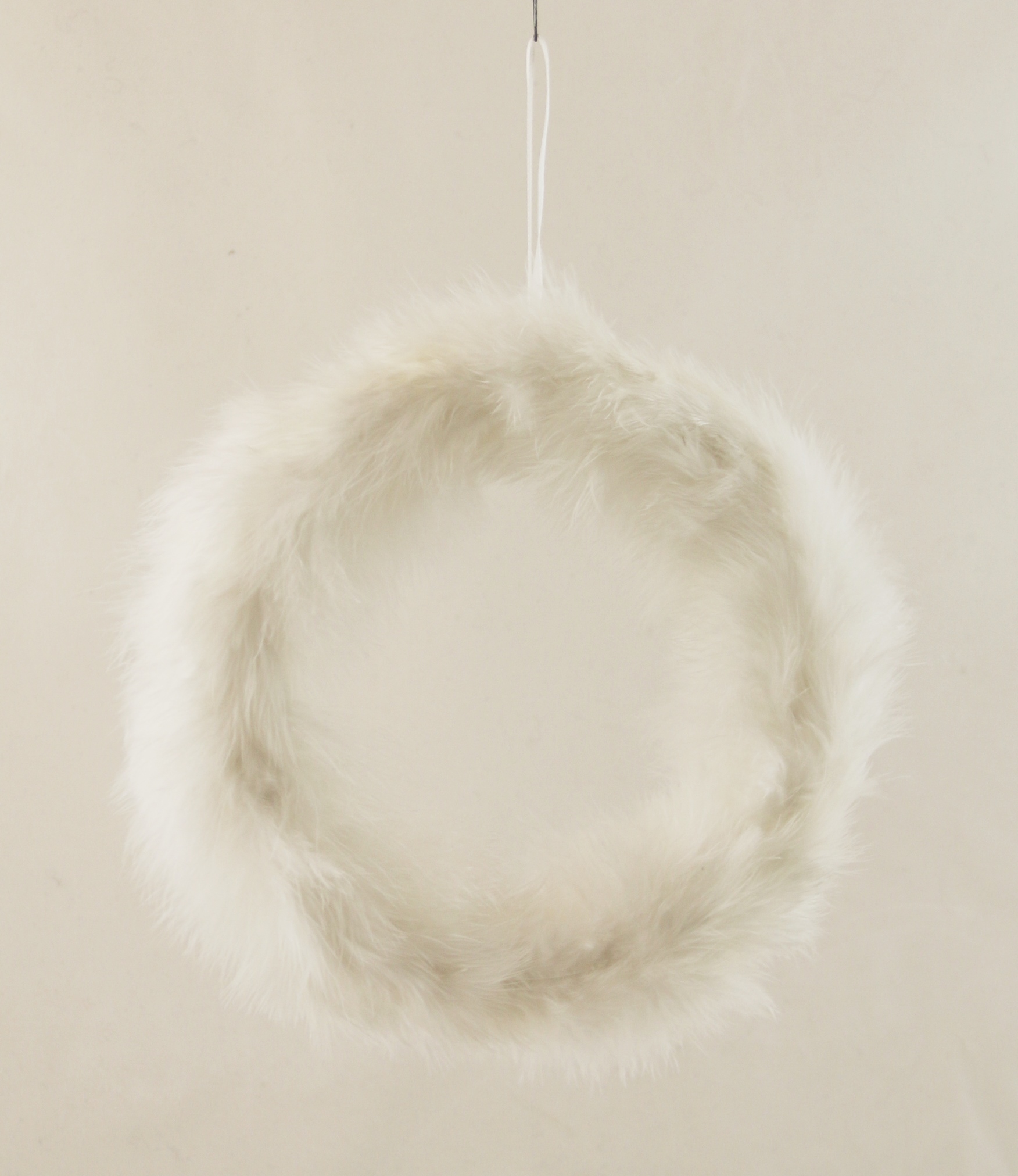 Dieses Kränzchen ist aus weichen, feinen Federn auf einen Styoporkranz bestückt