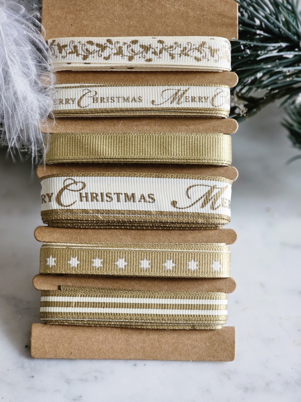 Geschenkband Textil Weihnachten Gold Elfenbeinfarben