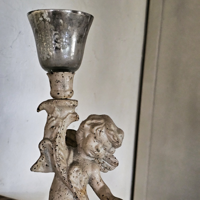 Zeitlos schön ist der Glasaufsatz für einen Kerzenständer, der im Antiklook gestaltet ist.