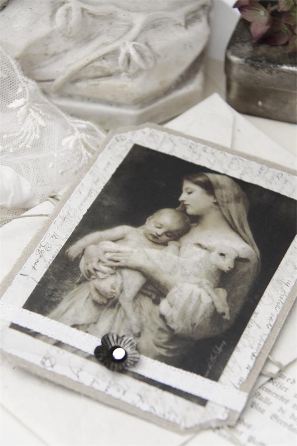 Motiv: Maria / Madonna mit Kind und kleinem Lamm auf Arm