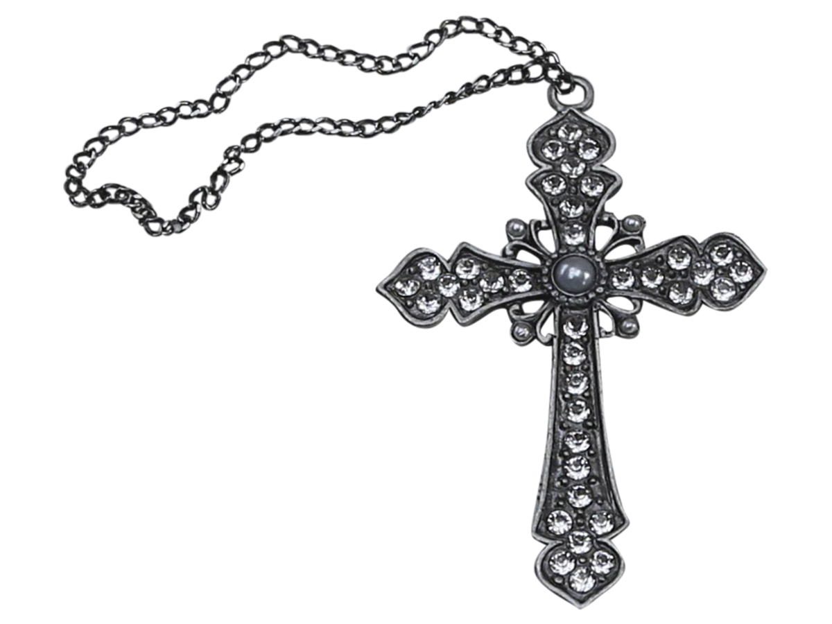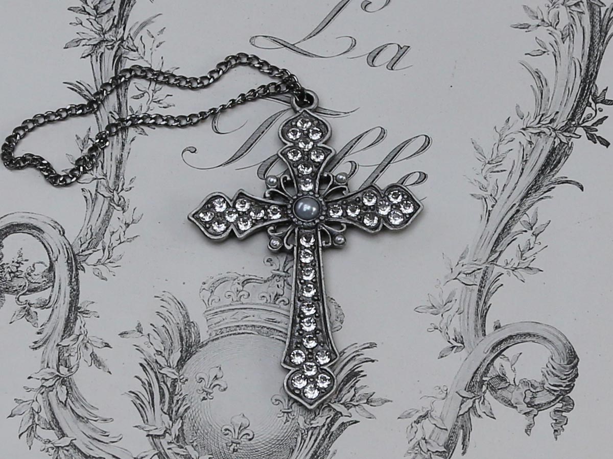 Hübscher Kreuzanhänger mit Strasssteinen und Perle verziert