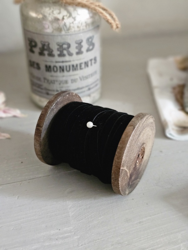 Samtband auf Holzspule black