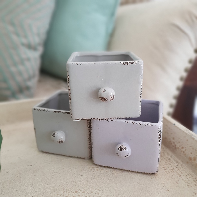 Übertopf Blumen Keramik Schublade Lasur Flieder