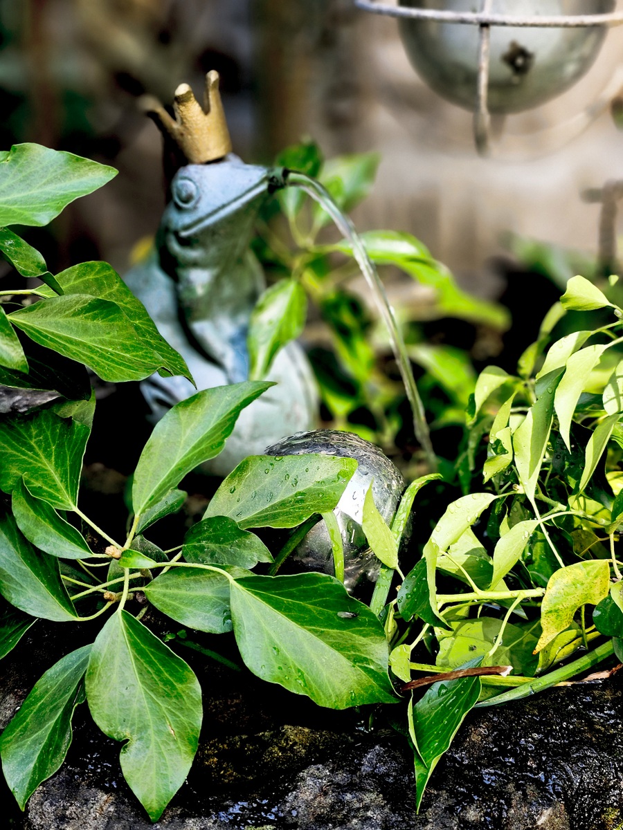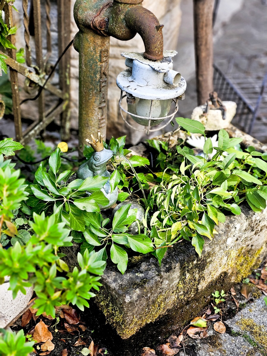 Den Frosch einfach in odere auf eine Schale, Steintrog oder Schüssel setzen,