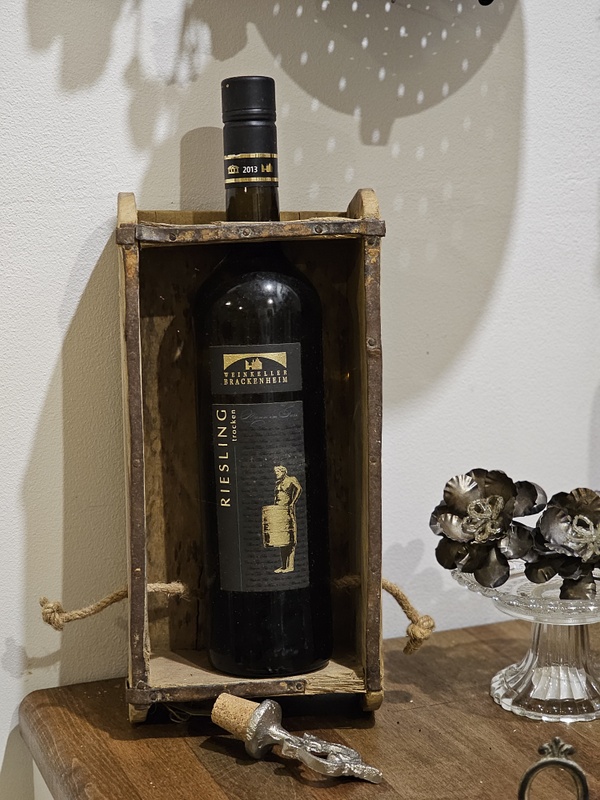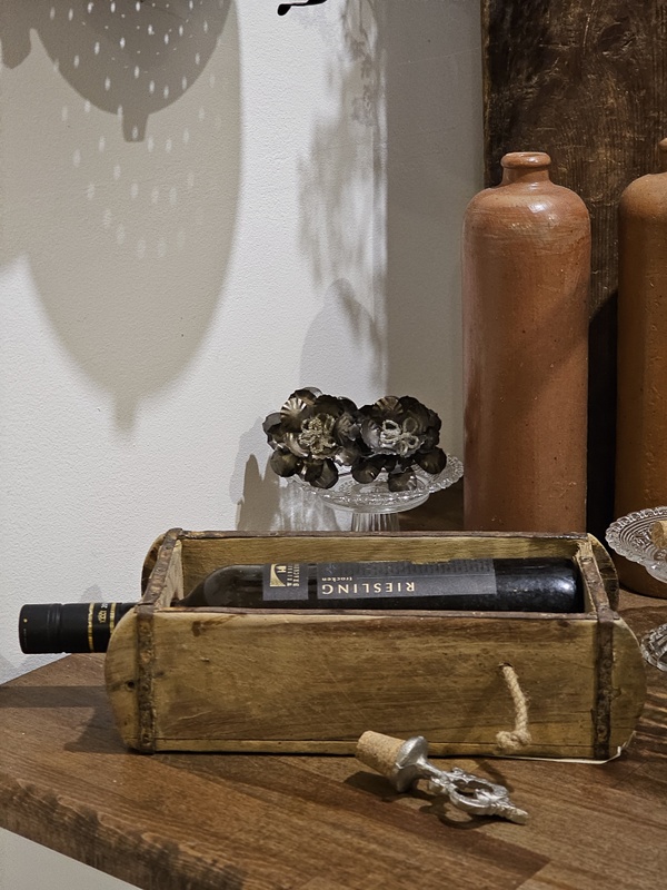 Weinflaschenbox aus alten Ziegelgussformen hergestellt