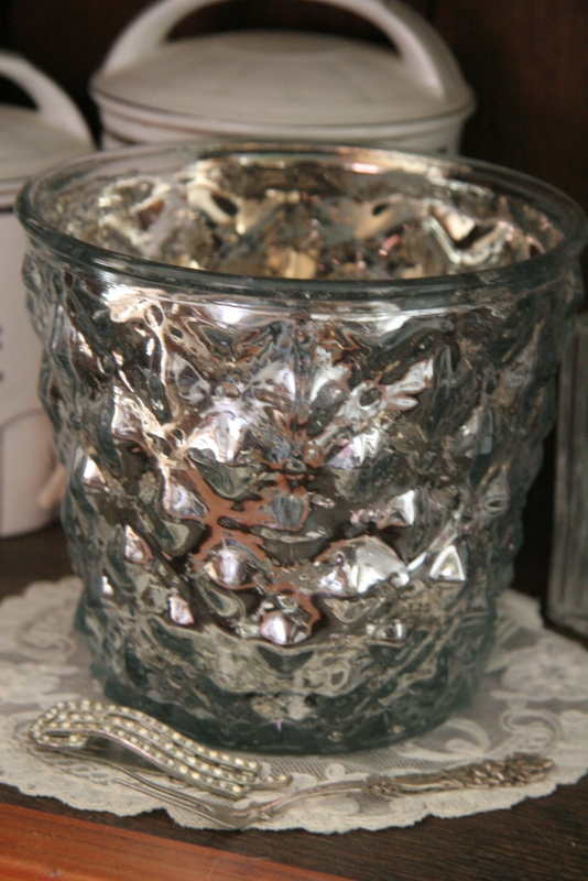 Windlicht Übertopf Glas silber